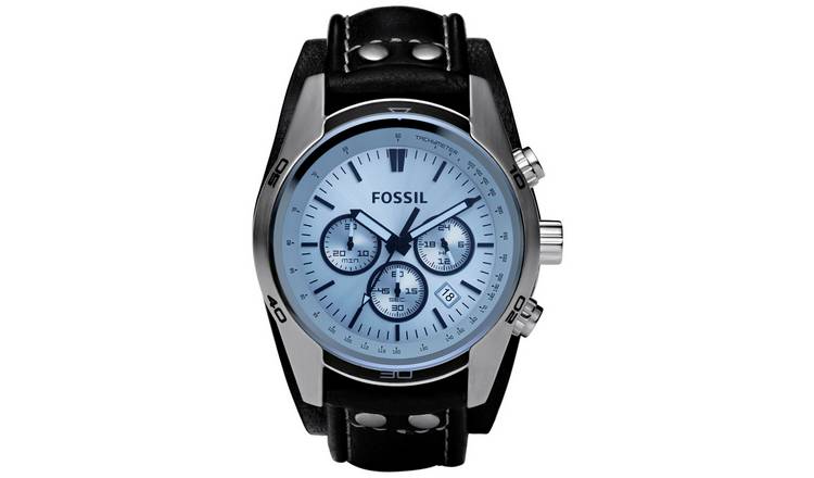 Buy Fossil Coachman Men S Chronograph Black Leather Strap Watch Men S Watches Argos